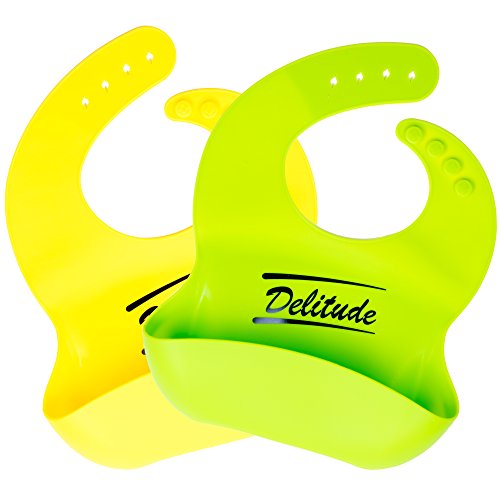 Even worse, they do not have large pockets that stay open to catch crumbs, or may not have pockets at all! Delitude baby Silicone Bibs are the best bibs for reducing these headaches. Made with 100% food grade silicone, our bibs will make your life easier when it is time to clean up after meals. The sturdy, front pocket can catch so much food that kids will sometimes eat right out of it! Also, silicone is naturally waterproof and stain resistant, so it will not soak up water or food! Additional features: 1=Soft, lightweight, and comfortable 2= Adjustable neckband 3=Travel-friendly - These bibs roll up to contain most of the mess until they can be washed. 4=No BPA or PVC. 5=Fits children 4 months to 7 years old. Dishwasher safe - If it is one of those messy meals, the bibs can be washed on the top shelf. 6=Lifetime guarantee no questions asked