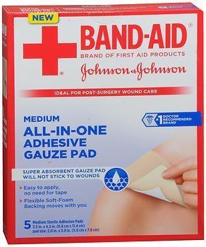 -. Title : Band-Aid Medium All-in-One Adhesive Gauze Pad, 5 Medium Size Adhesive Pads (Pack of 2)