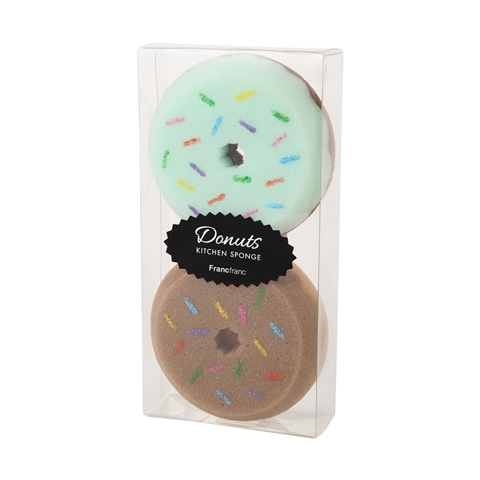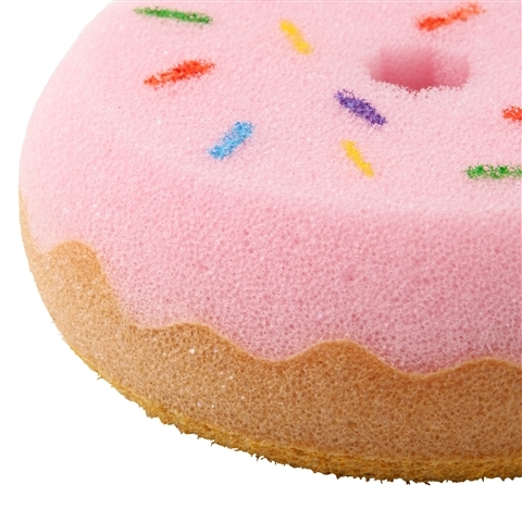 ドーナッツ型のキッチンスポンジです。 海外にありそうなカラフルなドーナッツをイメージしています。 穴にフックなどをさせるので、衛生面で綺麗に保てます。