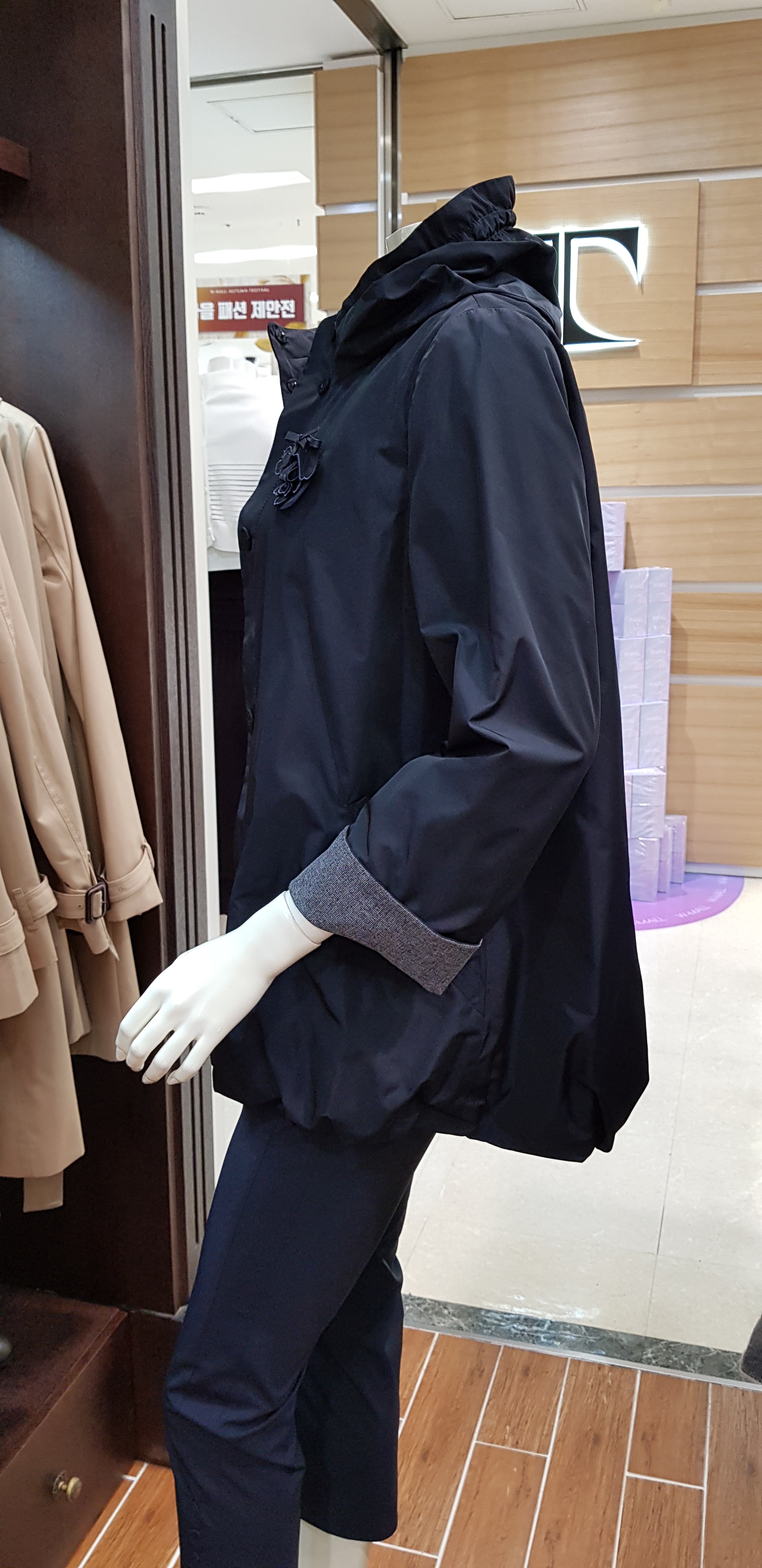 기비~여성스럽고 사랑스런 점퍼입니다 소매에는 롤업으로 포인트를 줄수있고 카라부분의 모자디테일이있어 캐주얼한 분위기 연출이좋은 풍성한 느낌의 아이템입니다 총장75센티입니다
