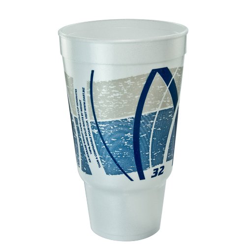 Dart 32AJ20E Impulse Hot/Cold Foam Drinking Cup, 32oz, Flush Fill, Printed, Blue/Gray, 16/Bag