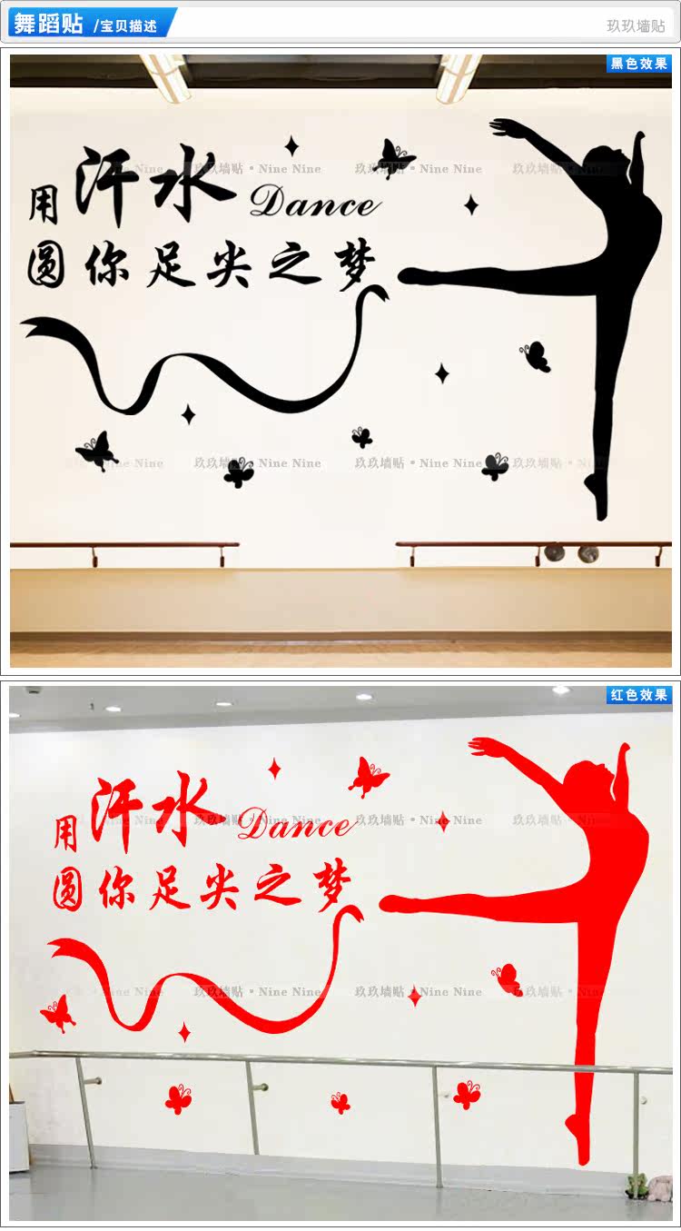舞蹈教室音乐芭蕾舞培训室艺术院校背景墙装饰墙贴励志口号贴纸画