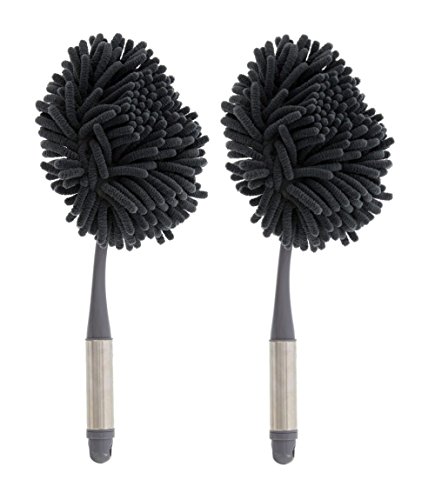 Farberware Chenille Duster, Microfiber Dusting Brush with Machine Washable Detachable Head, Stainless Steel- 2pk