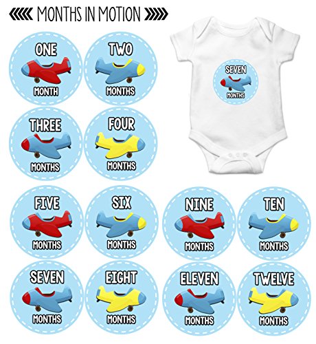 Months In Motion - Baby Month Stickers - Monthly Baby Sticker for Boys - Airplanes (1087)
