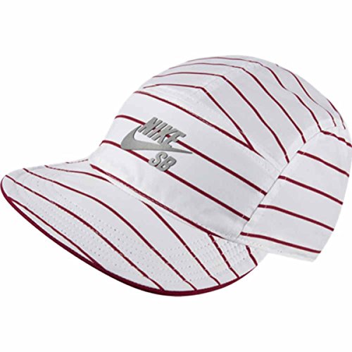 Binding : Apparel Product Description Nike SB Reversible 5 Panel Hat REVERSIBLE. ADJUSTABLE. BREATHABLE. Nike SB Reversible 5 Panel Hat gives you 2 looks, all with the same lightweight coverage in a comfortable, formfitting design. Dri-FIT fabric you dry while a buckle-back closure lets you customize the fit. Adjustable closure on the back provides easy on and off. Reversible design offers a variety of looks. 5-panel design offers formfitting comfort. Flexible bill is lightweight for a barely-there feel. One side features an allover striped design and a reflective Nike SB logo. The reverse side features a solid color and a "Nike SB" screen print. 100% POLYESTER 0