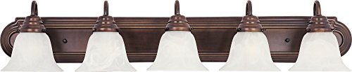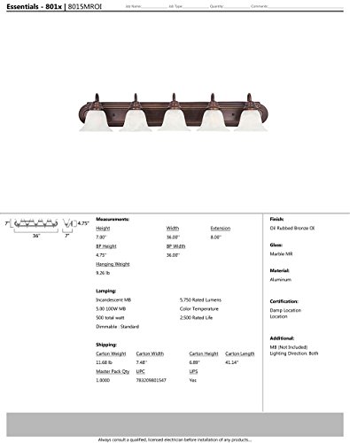 Maxim 8015MROI Essentials 5-Light Bath Vanity, Oil Rubbed Bronze Finish, Marble Glass, MB Incandescent Incandescent Bulb , 12W Max., Wet Safety Rating, 3000K Color Temp, ELV Dimmable, Opal Glass Shade Material, 840 Rated Lumens