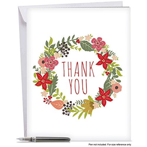 J6653AXTB Jumbo Blank Thank You Card: Watercolor Wreath Featuring Bright and Cheery Floral Wreaths Filled with Colorful Blooms,With Envelope (Extra Large Version: 8.5'' x 11'')