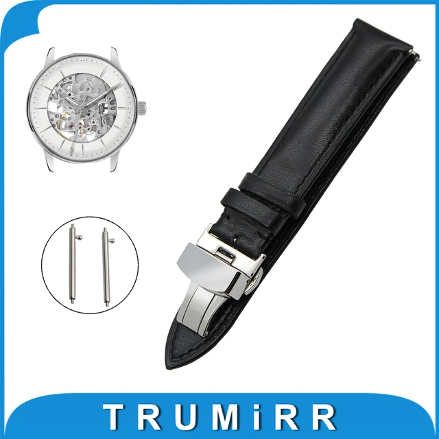 | [해외]18 미리메터 20 미리메터 22 미리메터 정품 가죽 시계 밴드 빠른 릴리스 스트랩 자크가 르망 butterfly 버클 손목 벨트 팔찌 블랙 |