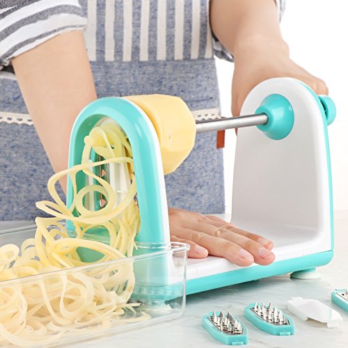 Make noodles out of vegetables, How cool is that! Spiral your vegetable, fruit to a healthy beautiful meal within a matter of seconds, with new designed JIMO 5 blades veggie spiralizer. Easy to set up, simple to use, making a big salad is a snap! You could saved so much time using this tool to make dinner after a busy day of work. Also dishwasher safe, BPA free. It's sturdy and quick action make this elegant gadget a handy addition to your kitchen. Never get bored on low carb veggie food again! Enjoy your vitamin packed gourmet meals even if you are on a diet, and your kids will love veggies too! What's in the box: Spiralizer Handle 4 Spiral Blades, the other blade installed on spiralizer Use Manual 0 |