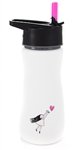 Eco Vessel Frost Kids Insulated Stainless Steel Water Bottle with Flip Straw (13-Ounce, White with Girl & Heart)