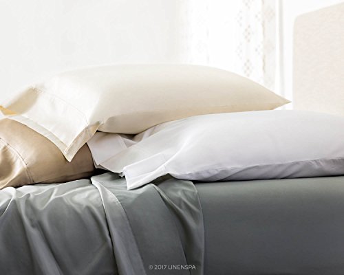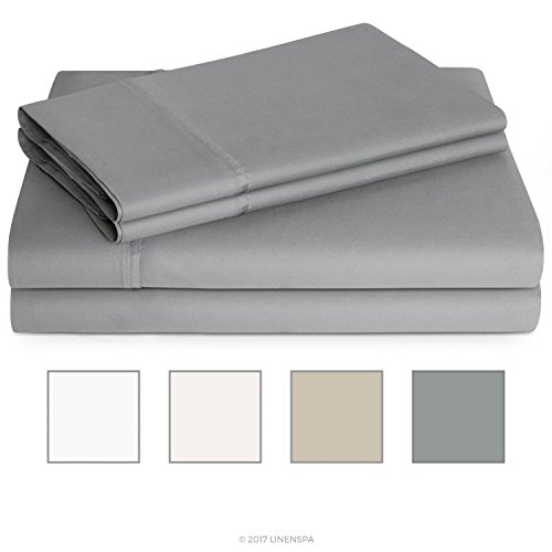 LINENSPA 600 Thread Count Ultra Soft, Deep Pocket Cotton Blend Sheet Set - Queen - Stone