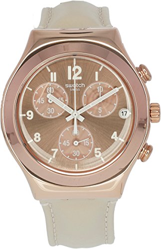 Swatch Irony Essential Rose Gold Dial Leather Strap Ladies Watch YCG416
