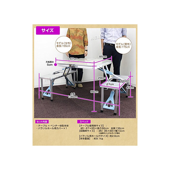 원본상품명: アウトドア テブル レジャテブル ベンチセット テブルセット レジャ テブル 折りたたみ テブル ピクニックテブル パラソル穴付き