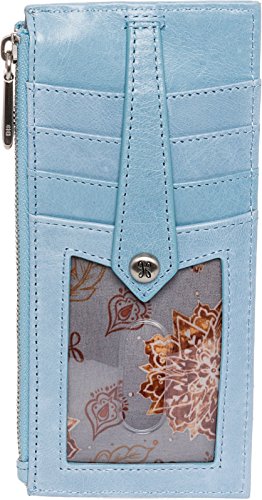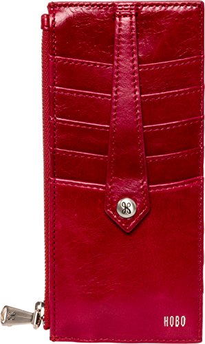 Take this Vintage Linn Card Holder Wallet from Hobo on the go. The minimalist design is perfect for the woman who doesn't have time to fumble around with those larger wallets or one just looking to head to the store really quick. The genuine leather exterior features 9 credit card slots secured by a snap closure, ensuring everything stays put. A center zip pocket is the perfect size for loose change or tickets, and the interior chain lets you hook this wallet to your purse for added security. Measures 6.5" x 3" x 0.5".Feature