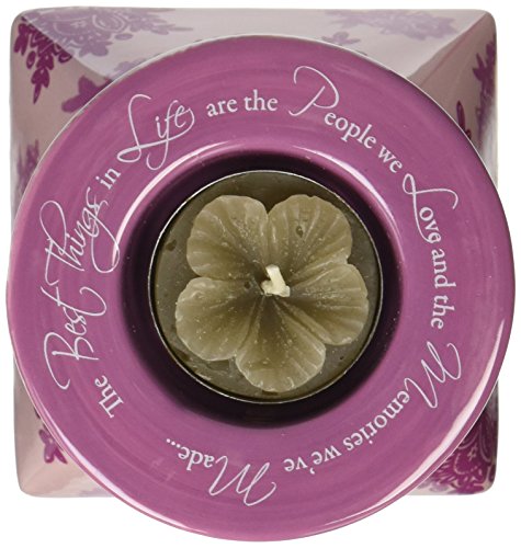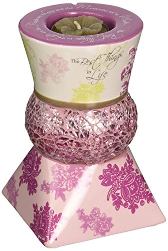 Up Words by Pavilion Pink Tea Light Candle Holder, The Best Things in Life Sentiment, 5-1/2-Inch Tall, Includes Tea Light Candle