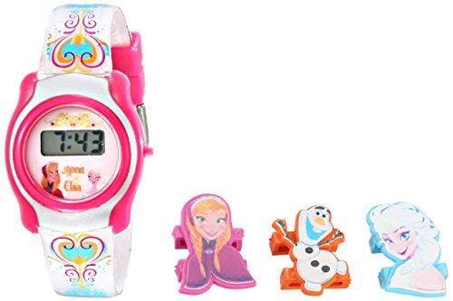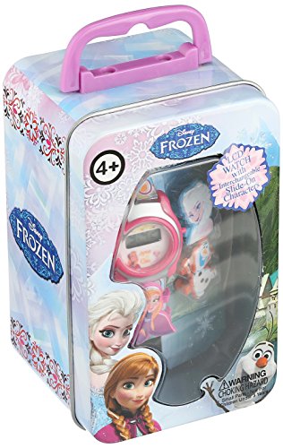 Frozen watch with digital display featuring interchangeable character faces and a complimentary gift tin
