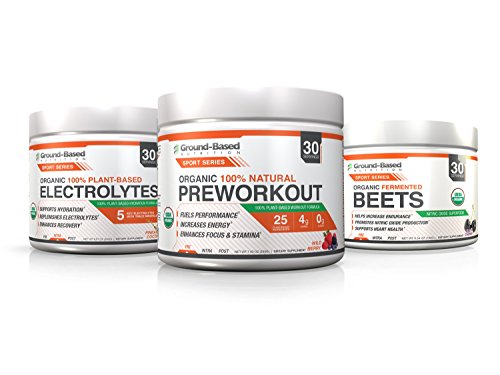 -. Binding : Health and Beauty -. Brand : Ground-Based Nutrition -. EAN : 0858310004405 -. Feature : USDA Certified Organic 100% Plant-Based Performance Products Designed to Fuel Performance, Increase Energy, and Enhance Focus & Stamina. / ULTIMATE BUNDLE FOR ENERGY, ENDURANCE, and RECOVERY! / PREWORKOUT: Provides Sustained Energy from Organic Green Tea, Organic Goji Berry, Organic Matcha Tea, and Organic Caffeine from Green Coffee Bean. Cleanest natural pre-workout formulation ever! / BEETS: Our organic beets are fermented to achieve high nitrate levels to maximize nitric oxide production in the body. CareflowTM Mango is added which has been clinically proven to improve microcirculation by enhancing eNOS activity, the enzyme required to convert arginine to nitric oxide. / ELECTROLYTES: Derived from organic coconut water, organic banana, organic pineapple, Himalayan sea salt, organic tart cherry and plant-based trace minerals for the perfect mix of plant-based minerals and electrolytes to support rapid rehydration and recovery. -. IsAdultProduct : 0 -. Label : Ground-Based Nutrition -. Manufacturer : Ground-Based Nutrition -. ProductGroup : Health and Beauty -. ProductTypeName : HEALTH_PERSONAL_CARE -. Publisher : Ground-Based Nutrition -. Studio : Ground-Based Nutrition -. Title : Ground-Based Nutrition Certified Organic Pre-workout, Electrolytes and Fermented Beets Powder Bundle – Increases Endurance, 100% Plant-Based Formula, Vegan, Gluten Free, Non-GMO, No Added Sugar -. UPC : 858310004405