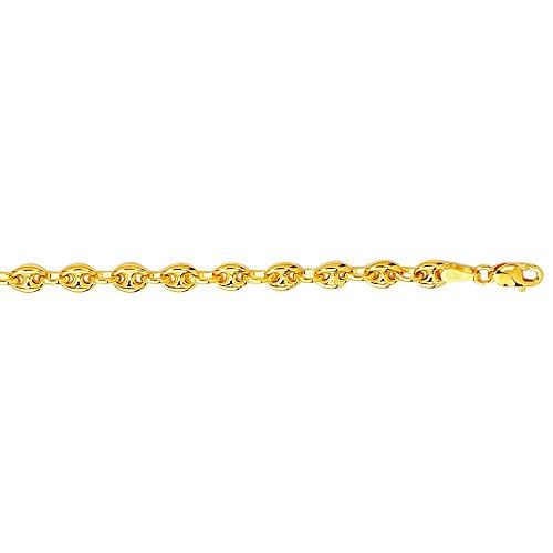 -. Title : 14K Solid Yellow Gold Puffed Mariner Anklet 4.7mm thick 10 Inches