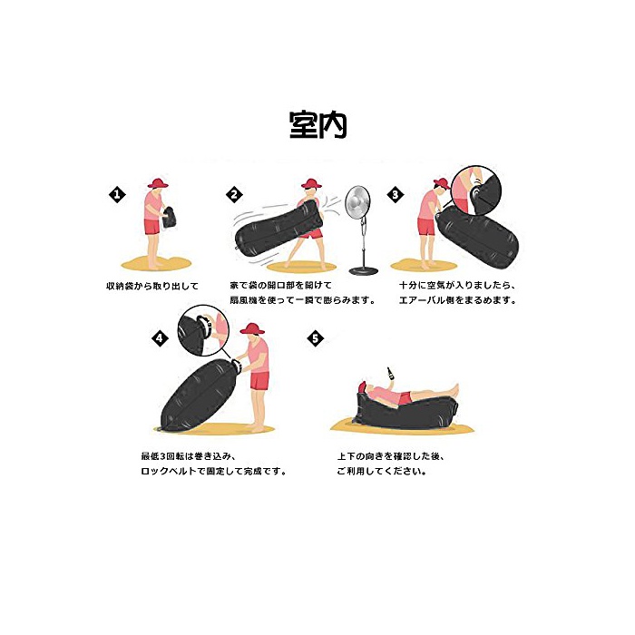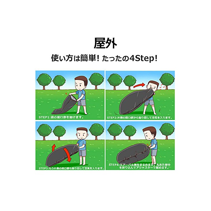 사용 간단:공기 펌프는 불요,선풍기를 사용하거나,돌아다녀 공기를 만들어 넣음(담는 그릇·상자 등)거나 합니다.편리성:전용 수납대에 콤팩트에 수납할 수 있기 때문에 운반이 쉽습니다.수납 방법도 몹시 간단,10 초정도에 옵니다.