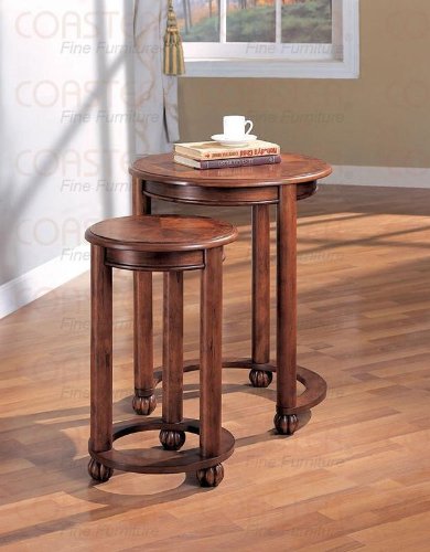 -. Title : 2PC Traditional Round Burl Inlay Nesting Table Set In Cherry Burl Wood Finish. (Coaster Furniture 901039)