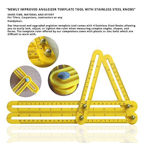 - ❤ NEWLY IMPROVED MULTI-ANGLE MEASURING RULER – Our improved and upgraded angleizer template tool comes with 4 Stainless Steel Knobs allowing you to easily lock, adjust, or tighten the ruler when measuring complex angles, shapes, and forms. The template ruler offered by our competitors come with plastic or zinc bolts which are difficult to work with.