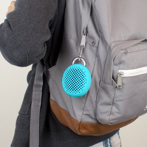 -. Feature : Includes: Bluetune-Bean speaker, instruction manual, USB charge cable, and carabiner clip / Built-in microphone automatically pauses and resumes music play for hands-free calls / Easily clips on to backpacks, laptop bags, suitcases, purses, belt loops, and more for portable audio / Up to 6 hours of playback time / Connect wirelessly via Bluetooth up to 33 feet away