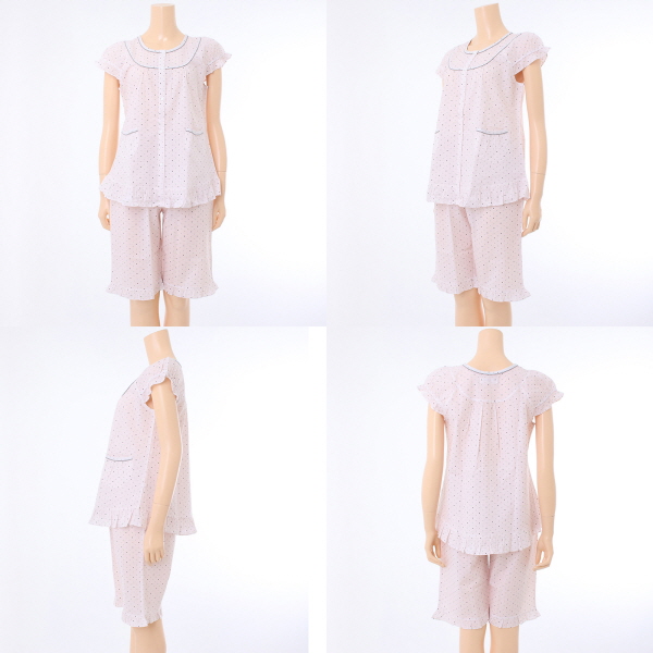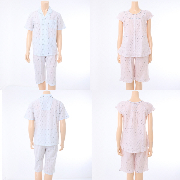 작은 별나염이 프린트된 면 100% 리플 소재로 만들어진 파자마 입니다.