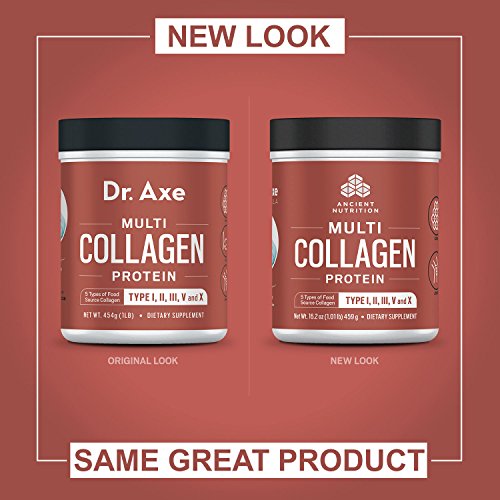NEW LOOK, SAME GREAT FORMULA - Dr. Axe Multi Collagen Protein powder is now Ancient Nutrition Multi Collagen Protein powder! During this transition you may receive a container with one of the two different labels, but rest assured it's the same great collagen protein powder formulation you love