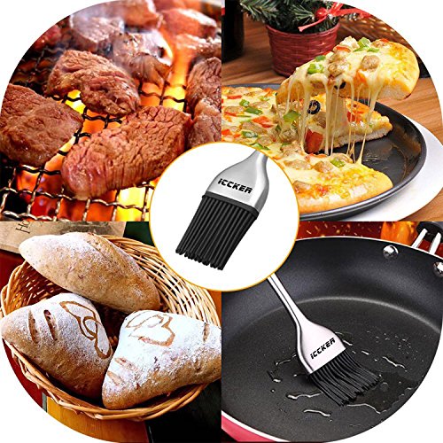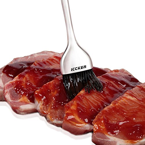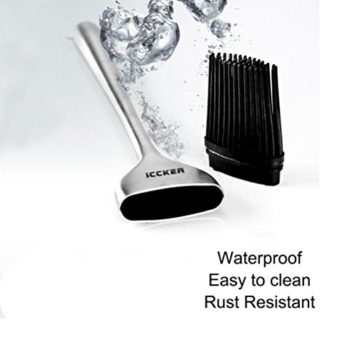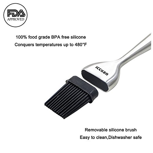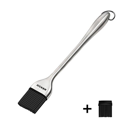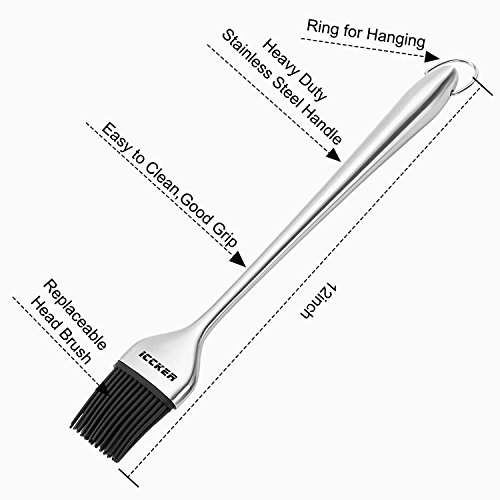 RWM ICCKER Basting Brush - Good Grips Flexible Heatproof Stainless Steel Pastry Brush with Back up Silicone Brush Head Resistant,Food Grade,Dishwasher Safe,BPA Free,FDA Approved,Bristle Free,12-inch