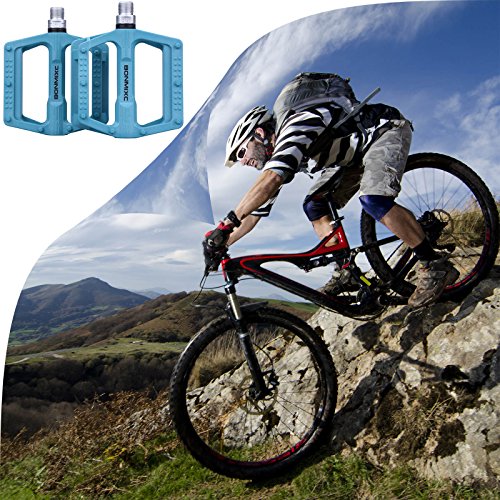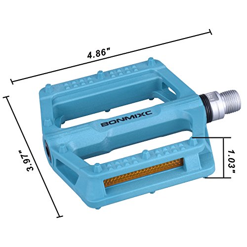 STABLE STRUCTURE - Lightweight polyamide material with good abrasion resistance and corrosion resistant, integral forming design strengthen the overall structure of bicycle pedals with more stable and durable, the weight of 0.36lb and size 1.03x3.97x4.86inches each