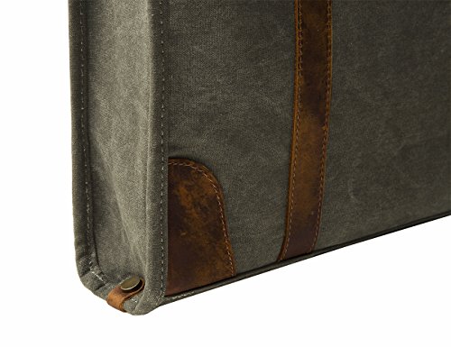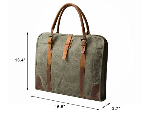 -. Binding : Personal Computers -. Brand : ECOSUSI -. Feature : Main Material: This messenger briefcase made of high density canvas with soft leather trim, and vintage metal decoration / Varied in Style: shoulder bag/ messenger bag/ handbag/ business briefcase / Product Size: 16.5*13.4*3.7 inches / 42*34*9.5 cm (L*H*W), with a 55" detachable adjustable shoulder straps conveniently adjusts to your height / Premium Organizer: Interior padded Interior compartment protects laptop against the collision; a zipper pocket and two open pockets to hold your daily necessities / Ideal for most popular 13.3" ~ 15.6" Mac Book/ Laptops/ Chrome books. Proper Fitment Varies Depending on Size of the Device. Please check the dimensions before purchasing -. ProductGroup : PC Accessory -. ProductTypeName : CARRYING_CASE_OR_BAG -. Title : ECOSUSI High Density Canvas Real Leather Business Messenger Briefcase Laptop Bag Fit 15.6" Laptop