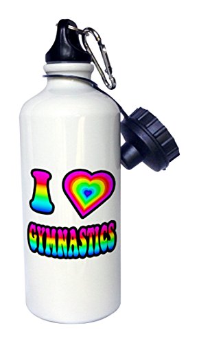 3dRose wb_217438_1 Groovy Hippie Rainbow I Heart Love Gymnastics Sports Water Bottle, 21 oz, White