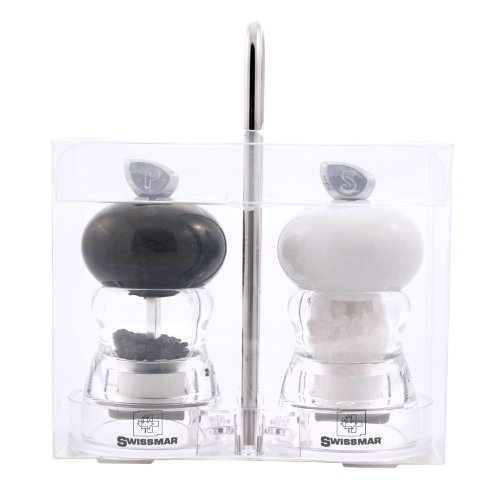 Swissmar Andrea You and Me 4-Inch Pepper and Salt Mill Set with Tray, Black and White
