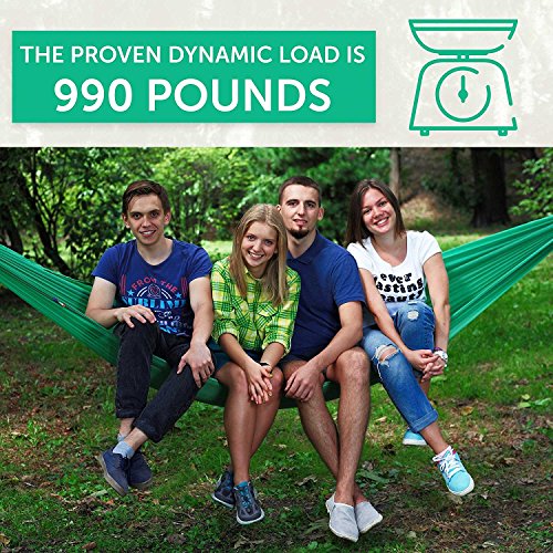 - ★ EXTRA STRONG, COMPACT & LIGHTWEIGHT – made of strong, breathable, quick-drying 100% polyester. The proven dynamic load is 990 pounds. The hammock with 33 ft. straps placed into the portable & compact bag. It's dimensions are 8x4 inches and total hammock weight is just 1 pound