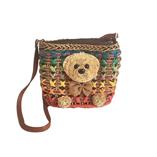 Women’s Kids Straw Shoulder bags Purses Little Bear