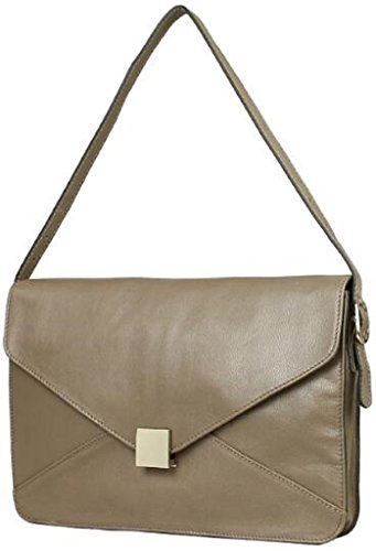 Lush Leather Lambskin Envelope Flap Shoulder Dark Taupe Brown Bag