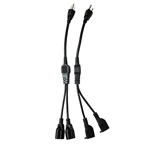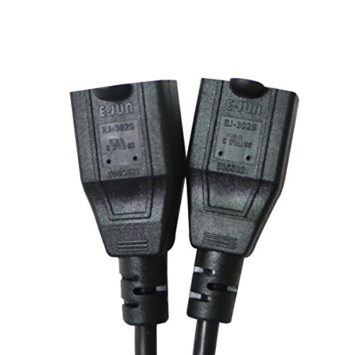 (2 Packs) AliTronics 3 Prong Extension Cord, 16AWG, 1-to-2 Cord Splitter,UL Listed,19 Inch Length, Black, bear 300V voltage(1-to-2 Splitter Extention Cord)