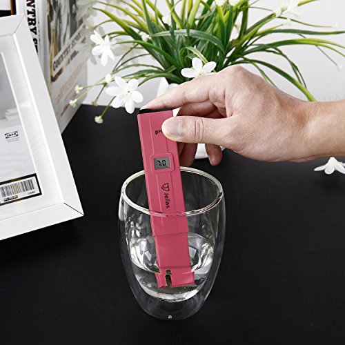 pH Tester, Jellas Pocket Size pH Meter Water Quality Tester for Household Water, Pools, Aquariums, Hydroponics, Home brew, pH Measurement for pH 0-14.0, ± 0.1 Accuracy, 0.1 Resolution (Rose Red)