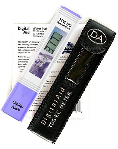 Digital Aid Professional TDS, EC & Temperature Meter. 3 in 1. Professional Quality TDS Meter:0-9990ppm. Accurate and Reliable Water Test Meter. Ideal for Drinking Water, Aquariums. With Leather Case.