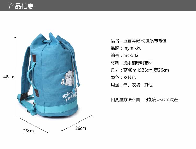 盗墓笔记双肩背包 闷油瓶张起灵小哥动漫书包 帆布包水桶包