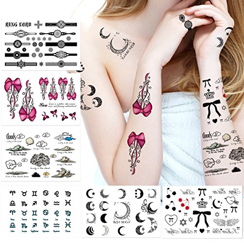 - Package include: 6 sheet of temporary tattoo. (bar-codes, music, heartbeat, keys, diamond, unicorn and more )