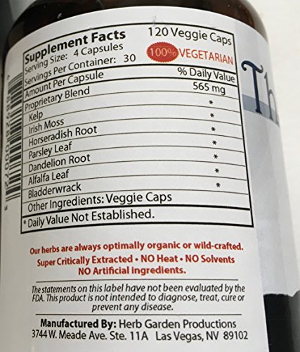 Studio : Vita-Myr International Corp Publisher : Vita-Myr International Corp Binding : Health and Beauty Product Description The Thyroid gland secretes thyroxin, which controls metabolic activity. A lack of thyroxin better known as hypothyroidism, results in a low rate, which can cause low body temperature, sluggishness, weight gain, and excess accumulation of body fluid. An excess amount of thyroxin better known as hyperthyroidism can cause weight loss and bulging eyes. The herbs in this formula have historically been used in normalizing thyroid function. Statements on this page have not been evaluated by the Food and Drug Administration. These products are not intended to diagnose, treat, cure or prevent disease. 100% Vegetarian Formula. Ingredients: kelp, irish moss, horseradish, parsley, bladderwrack, dandelion root, alfalfa. 0