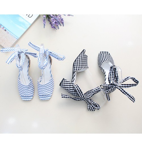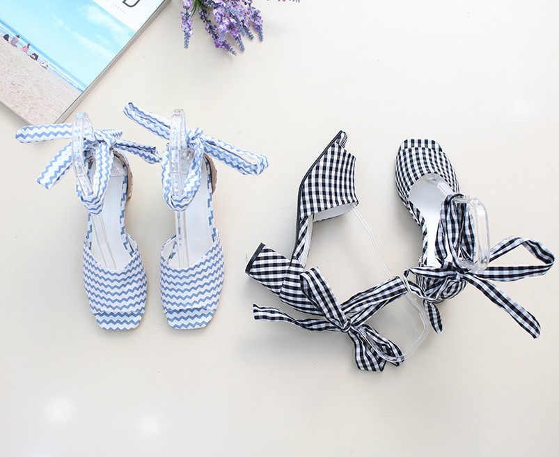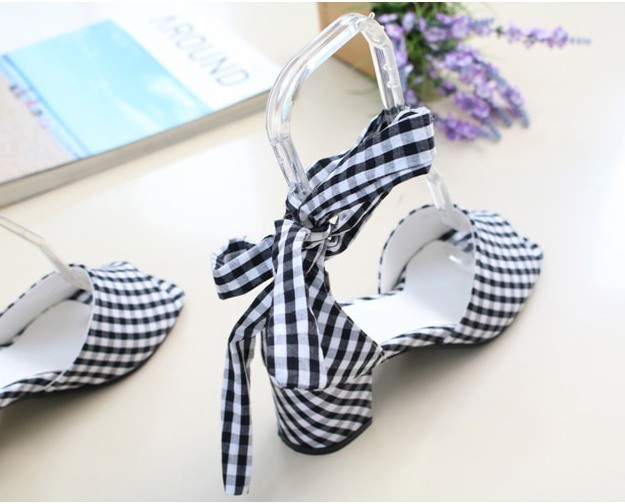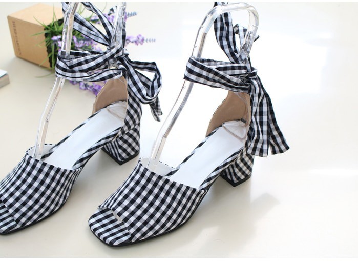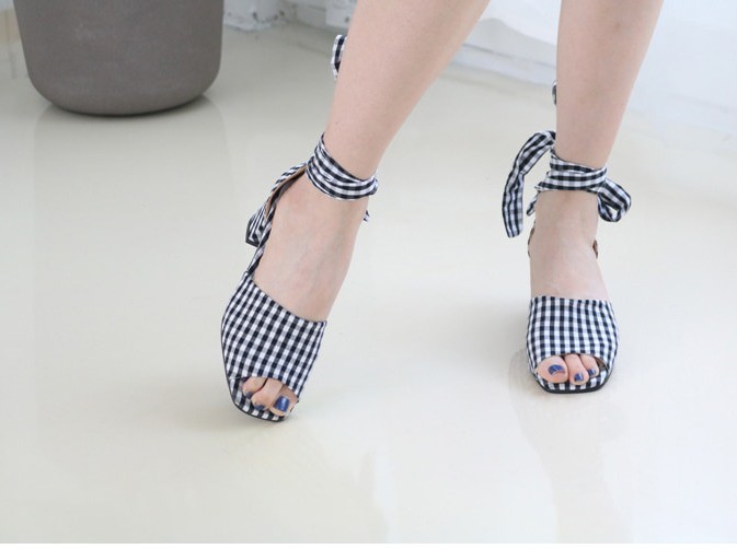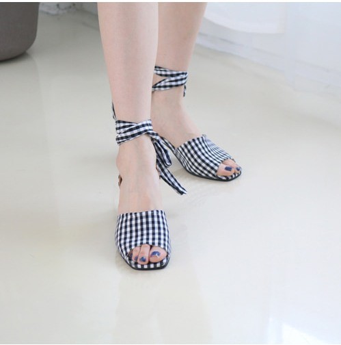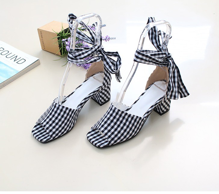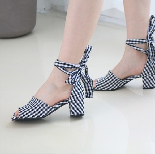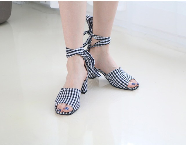 商品名:サンダル レディース アンクルストラップ チェック 太ヒール 2018 夏 ファッション 靴 婦人靴