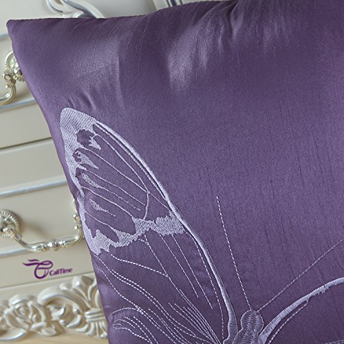 Pack of 2 CaliTime Pillows Shells Cushions Covers Faux Silk Vivid Butterfly Embroidered 18 X 18 Inches Purple
