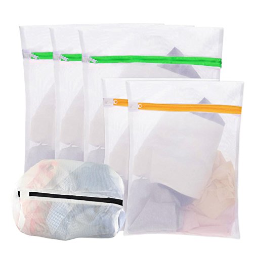 Wuhostam Laundry Wash Bag, Set of 6 Durable Mesh Wash Laundry Bag for Blouse, Bras, Hosiery, Underwear, Sweaters (Contains one clothesline)