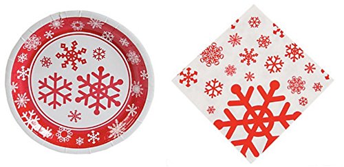-. Feature : 16 - 9" Paper Red and White Snowflake Dinner Plates / 32 - 13" Paper Red & White Snowflake Luncheon Napkins