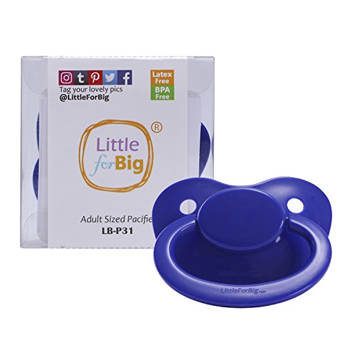 -. Binding : Baby Product -. Brand : Littleforbig -. Feature : True adult sized pacifier. Adult sized both teat and extra large shield. Teat Size: 2 inch Long x 1.2 inch Wide; Pacifier Shield Size: 2.6 inch Wide x 1.9 inch Tall / This pacifier can be taken apart to mix and match with other pacifiers from the same range. / High quality soft, natural silicone nipple. BPA, and latex free - see details in product descriptions below. / Adult Baby Diaper Lover Use - Reported to increse cuteness; calms and satisfies sucking urge. / Physical Therapy Use - Reported to reduce snoring; calms and satisfies sucking urge. -. Label : Littleforbig -. Manufacturer : Littleforbig -. Model : LB-P31-DarkBlue -. MPN : LB-P31-DarkBlue -. PartNumber : LB-P31-DarkBlue -. ProductGroup : Baby Product -. ProductTypeName : BABY_PRODUCT -. Publisher : Littleforbig -. Studio : Littleforbig -. Title : Littleforbig Adult Sized Pacifier Dummy for Adullt Baby ABDL BigShield DarkBlue