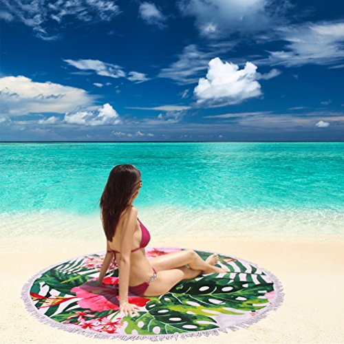 BEACH TOWEL FOR TWO PERSONS: Diameter is about 60” with tassels, the size can for 2 persons comfortably. With our round, XL oversized towel, you have room to snuggle up with your families and pets.