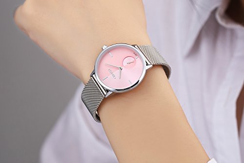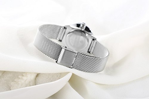-. Title : Women's Silver Stainless Steel Woven Mesh Strap Wrist Watch Simple Design Analog Display Quartz Watch