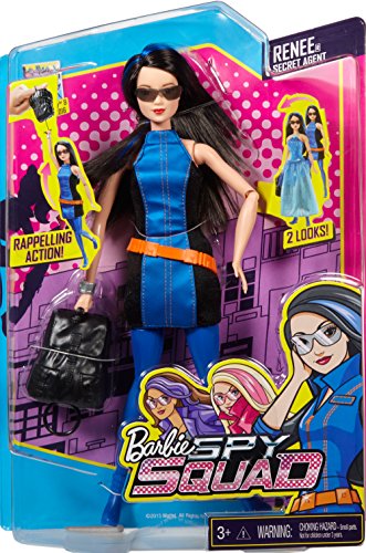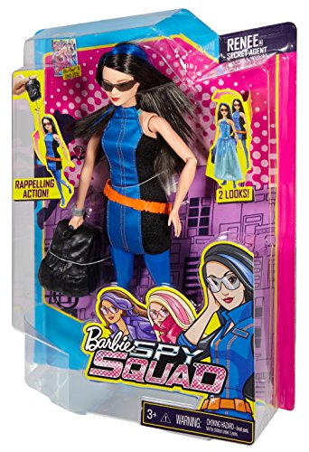 Tumble into action with Secret Agent dolls from Barbie Spy Squad and help to save the day! In the action-adventure film, Barbie, a world-class gymnast, is recruited to be a world-class secret agent along with her friends Teresa and Renee. The three take their teamwork from the gymnasium to the city -- and around the globe -- to stop an infamous cat burglar in her tracks. The Secret Agent dolls are ready for their mission with awesome moves and style. Renee Secret Agent doll comes with a rappelling gadget, disguised as a backpack held in her hand (and non-removable). Use the rappelling backpack to surprise opponents and make swift escapes -- Renee Secret Agent doll can drop and then climb 12 inches for a totally wow moment! Use is simple: slip the loop onto your finger, pull the doll down, press the button on her backpack and watch Renee doll climb. For even more quick action, she can be ready in an instant with an outfit that transforms from spy look to ball gown and back again! Go from a sleek color-blocked spy outfit (with brightly colored utility belt) to a gorgeous blue ball gown with sheer peplum and sparkly bodice. A cool pair of spy sunglasses complete her look. Secret-agents-in-training will love recreating action scenes from the film or spinning new spy adventures. Collect all of the characters from Barbie Spy Squad to close any case (each sold separately, subject to availability). Includes Renee Secret Agent doll wearing transforming outfit and accessories, sunglasses and rappelling backpack accessory (non-removable). Doll cannot stand alone. Colors and decorations may vary.Feature